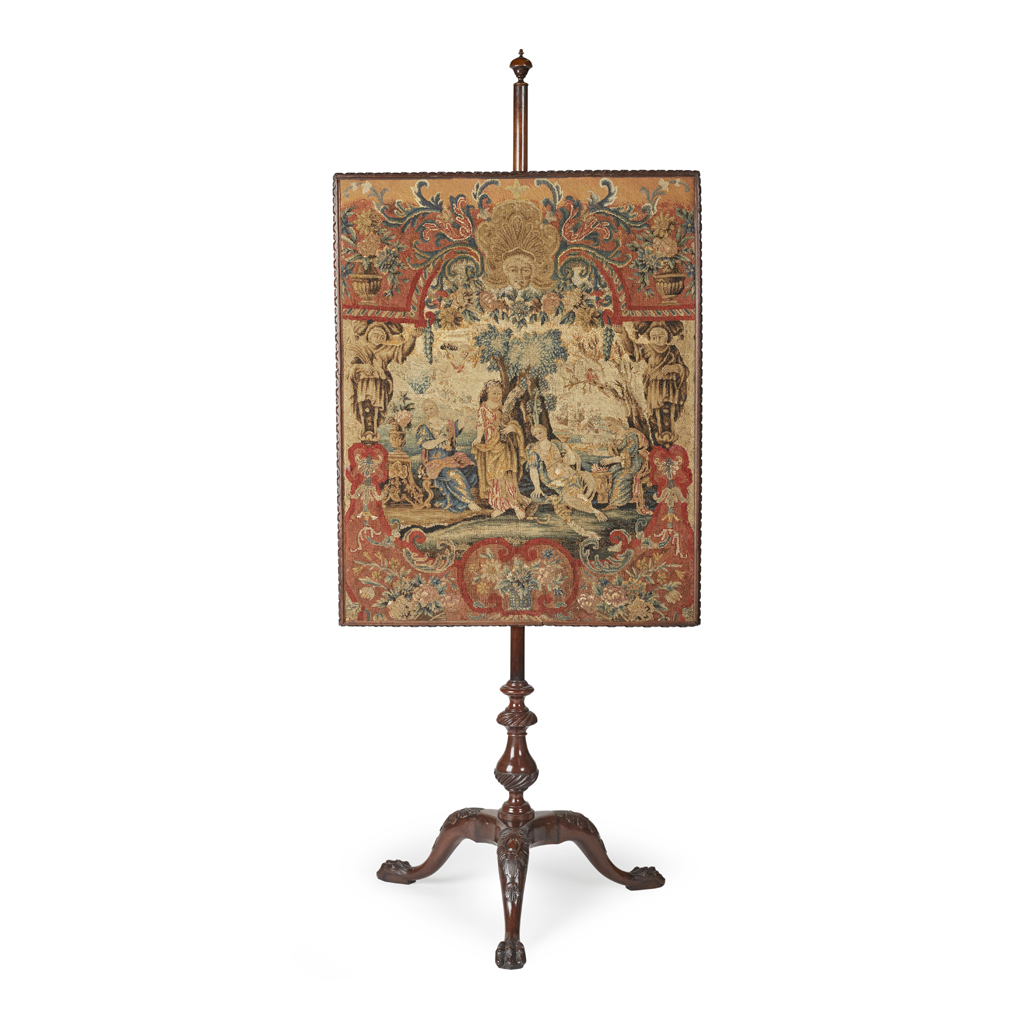 EARLY GEORGE III CARVED MAHOGANY POLE SCREEN