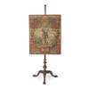 the rectangular panel of floral gross point and petit point needlework, backed with Chinese wallpaper, within a carved frame, the pole with a turned finial and stop-fluted and foliate carved baluster base, on downswept foliate and rocaille carved legs ending in ball and claw feet