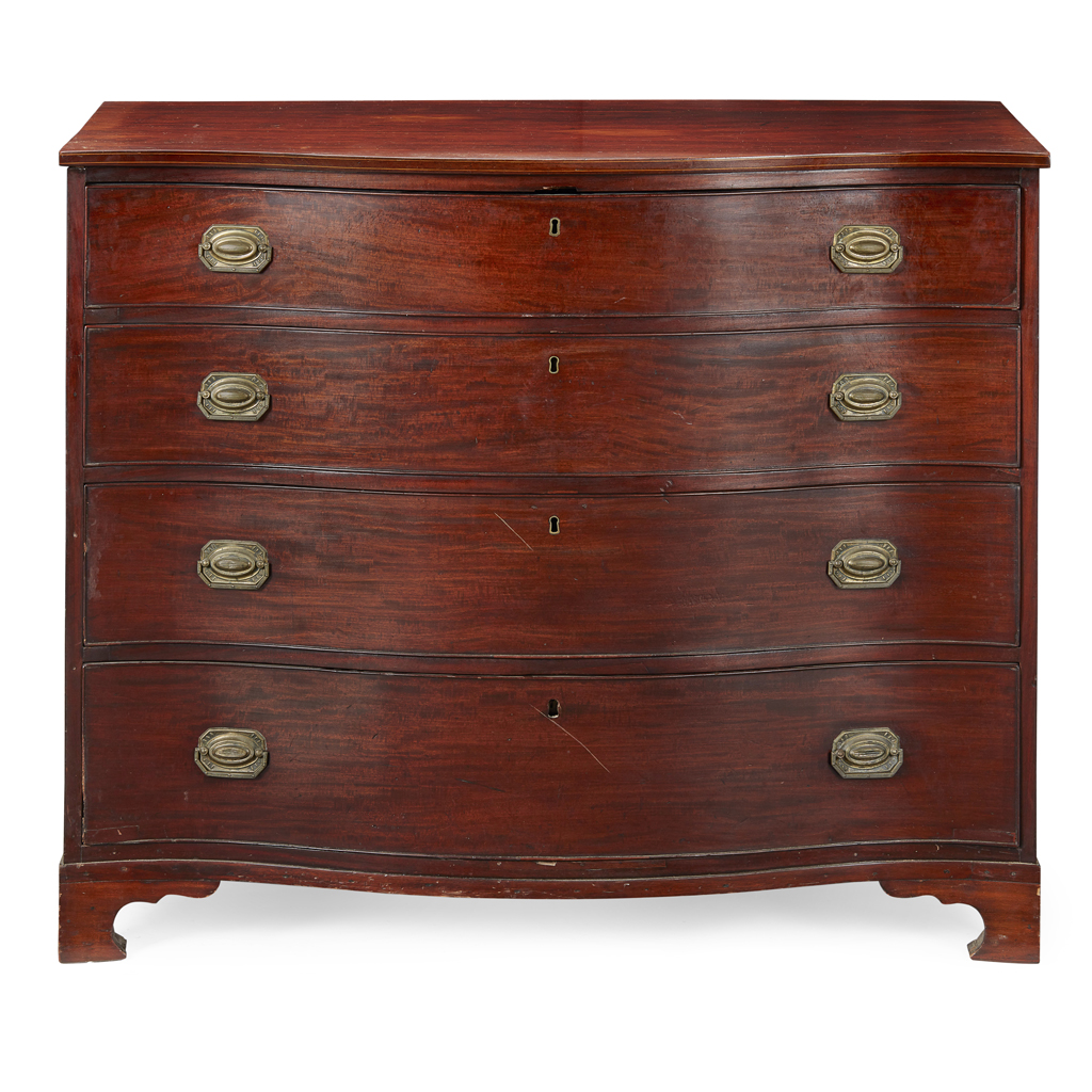 LATE GEORGE III MAHOGANY SERPENTINE CHEST OF DRAWERS