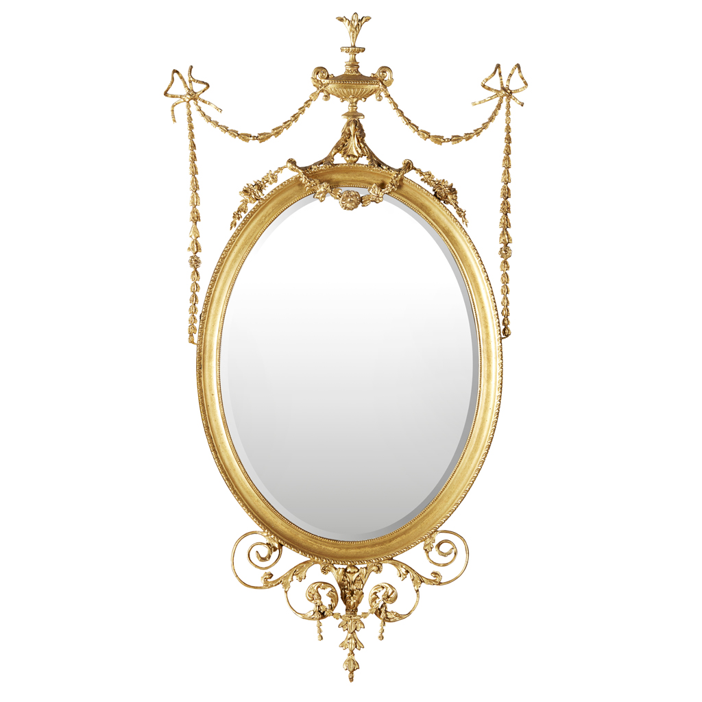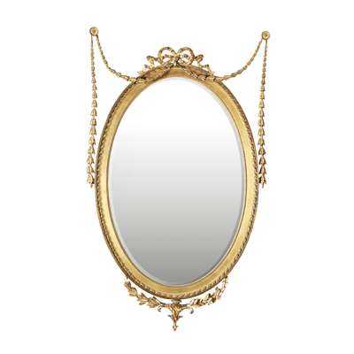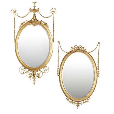 both with oval mirror plates, one with an urn cresting with laurel garlands, the other with ribbon-tied laurel garlands (2)