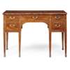 the rectangular top above a central frieze drawer and arched recess flanked by banks of two short drawers, raised on square tapered legs ending in spade feet