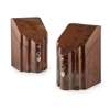 with sloped serpentine hinged lids, above white metal escutcheons, inlaid 'columns' and triangular borders, opening to later fitted interiors for decanters (2)
