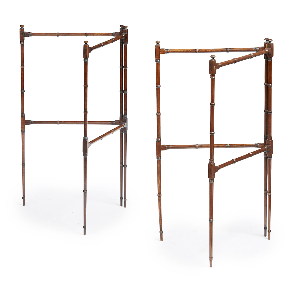 PAIR OF GEORGIAN STYLE FOLDING MAHOGANY HAND-TOWEL AIRERS
