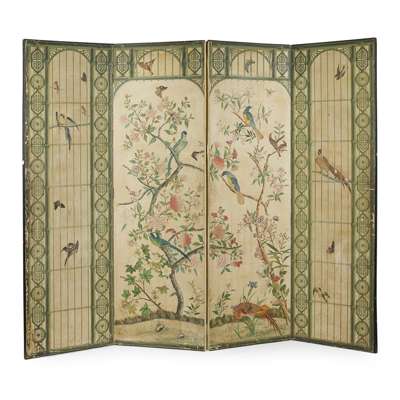 CHINESE WALLPAPER FOUR PANEL FLOOR SCREEN