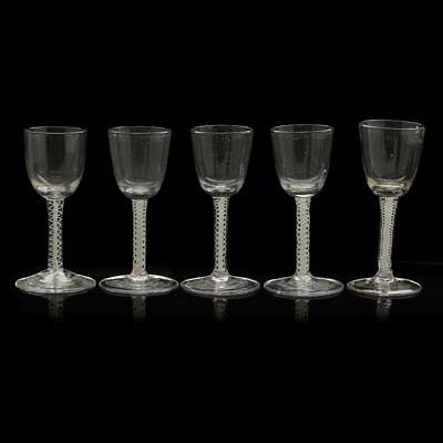 FIVE GEORGIAN OPAQUE TWIST-STEM WINE GLASSES