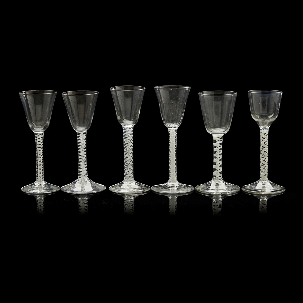 SIX GEORGIAN OPAQUE TWIST-STEM WINE GLASSES