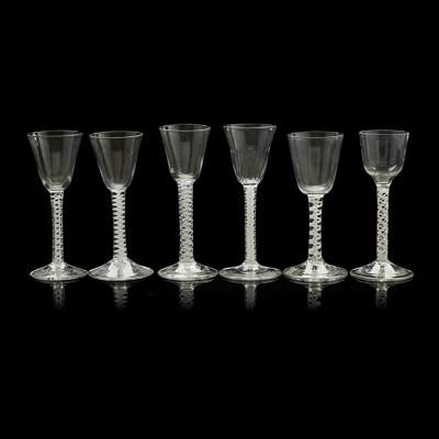 comprising two single series twist-stem glasses, and four double series twist-stem glasses, with round funnel and ogee bowls, on conical feet (6)