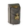 with brass mounts and handle, the sloped front opening to a velvet-lined fitted interior, all raised on four brass feet