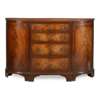 the shaped bow front top with a reeded edge above four graduated drawers flanked by curved doors, raised on bracket feet, bearing an ivorine trade label 'Kerrs/ Furnishers/ Edinburgh'