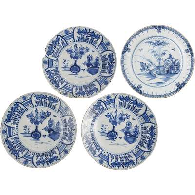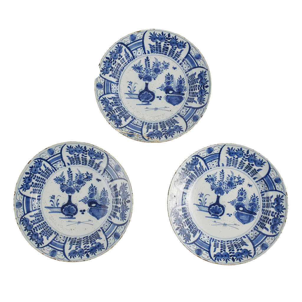 SET OF THREE DUTCH DELFT BLUE AND WHITE CHARGERS