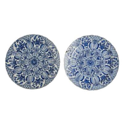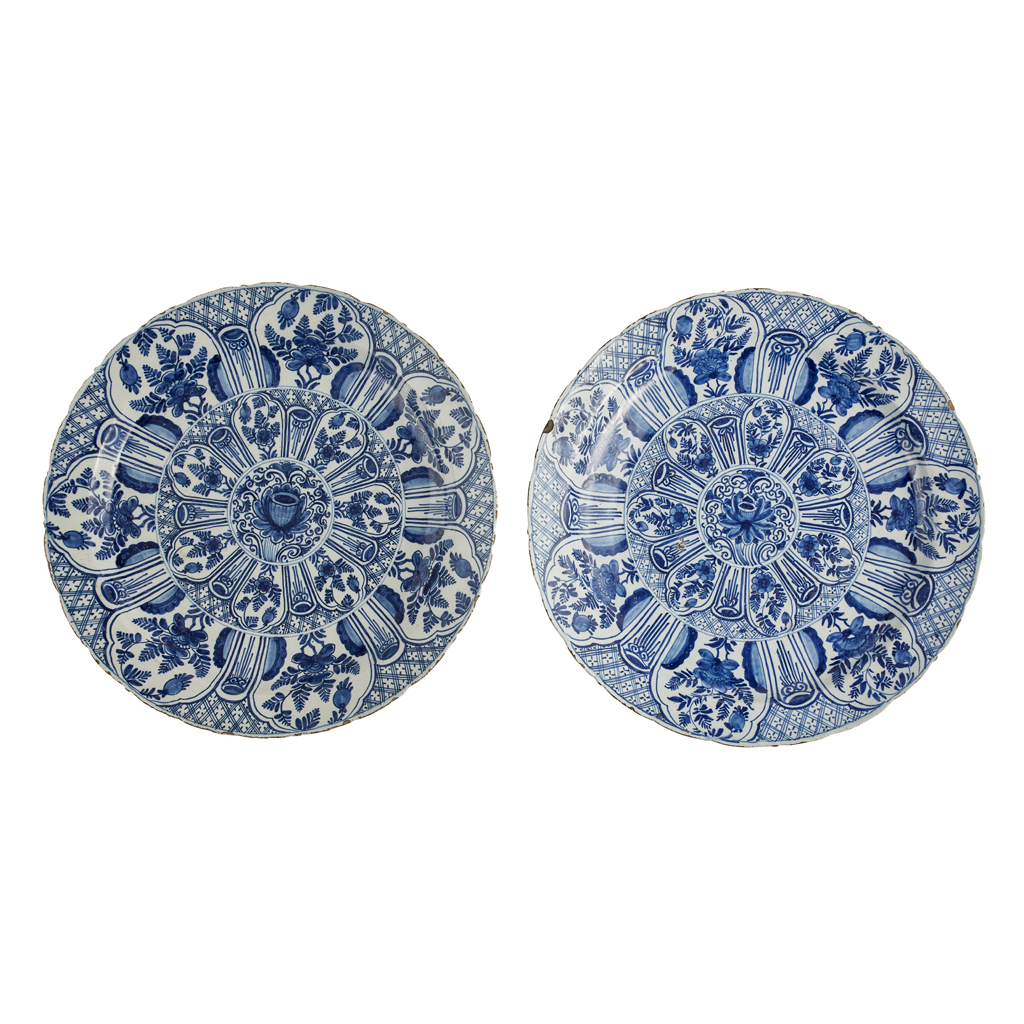 PAIR OF DUTCH DELFT ‘KRAAK’ CHARGERS, BY DE METAALE POT