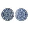 in blue and white with central floral motifs enclosed by graduated reserved bands with flowers and diaper patterns, painted marks (2)