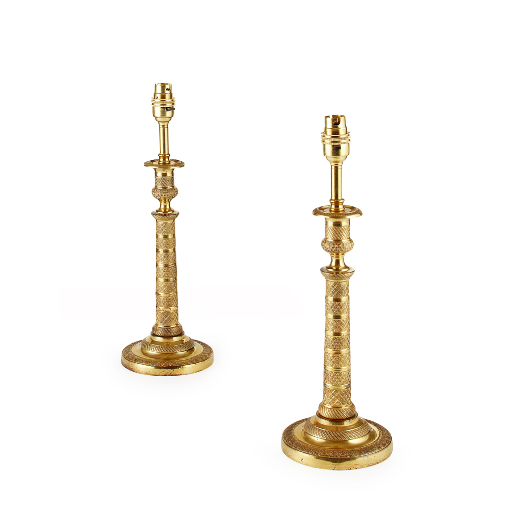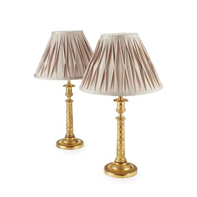 PAIR OF REGENCY GILT BRONZE LAMPS