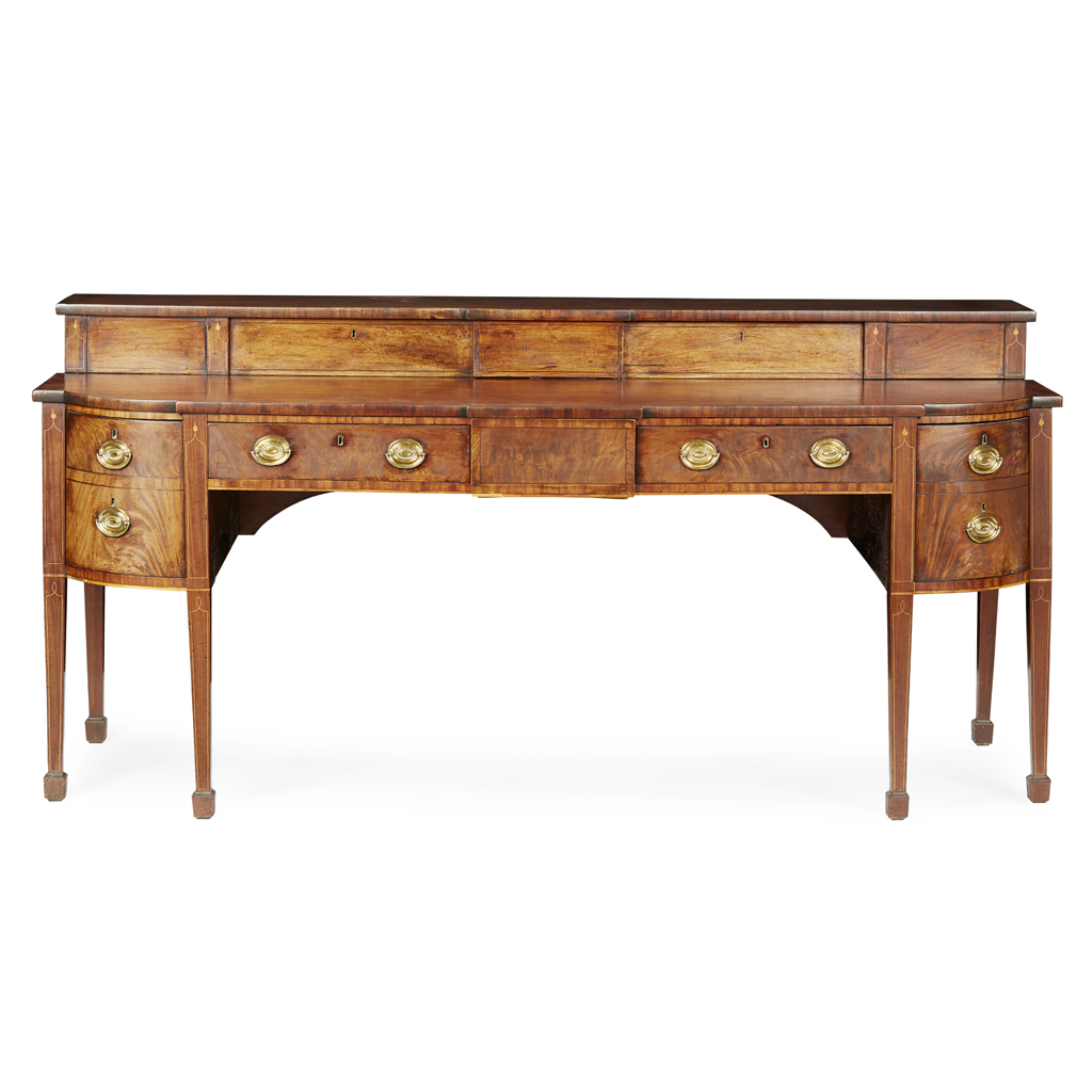 SCOTTISH REGENCY INLAID MAHOGANY STAGEBACK SIDEBOARD