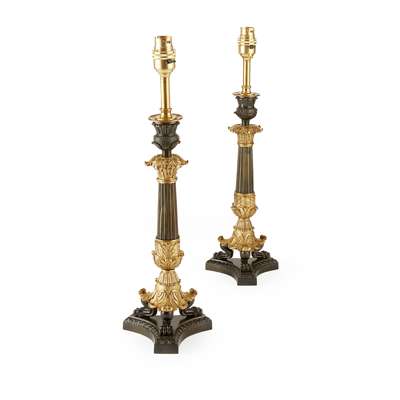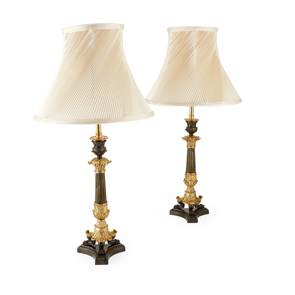 PAIR OF REGENCY GILT AND PATINATED BRONZE LAMPS