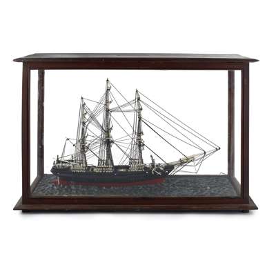 CASED MARINE IVORY MODEL OF A MERCHANT SHIP Y