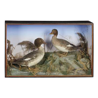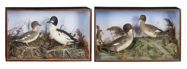 TWO CASES OF TAXIDERMY GOLDENEYE DUCKS Y