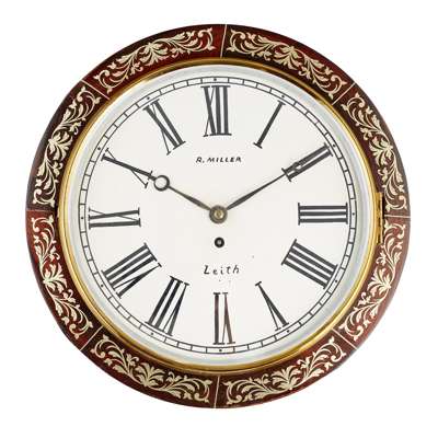 SCOTTISH ROSEWOOD BRASS INLAID WALL CLOCK, R. MILLER, LEITH Y