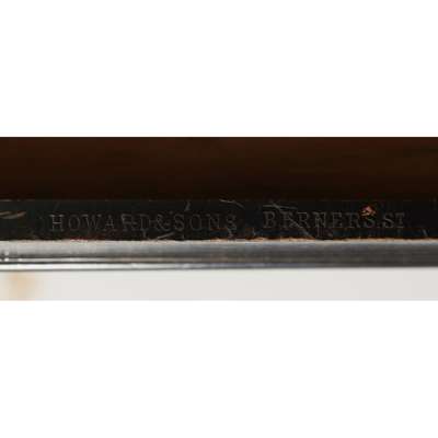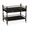with two tiers with three quarter galleries with bone spindles, raised on turned legs ending in brass castors, the top tier with a long drawer stamped on the interior 'HOWARD & SONS BERNERS STREET'