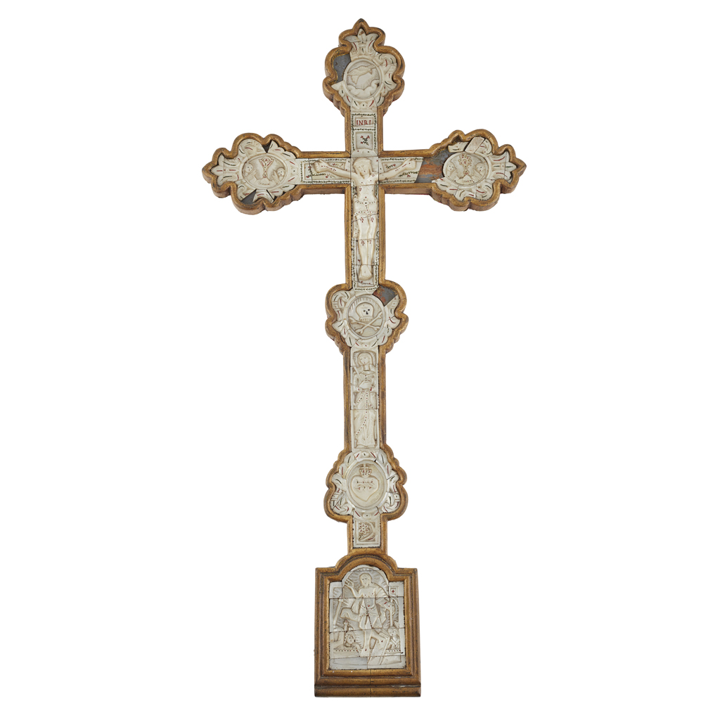 FLEMISH MOTHER-OF-PEARL AND GILTWOOD CRUCIFIX