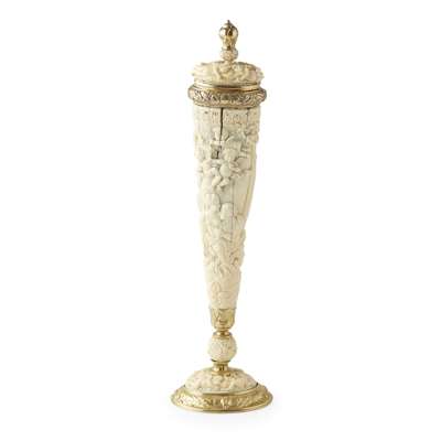 AUSTRIAN SILVER-GILT MOUNTED IVORY CUP AND COVER Y