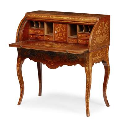 DUTCH ROSEWOOD AND MARQUETRY CYLINDER BUREAU Y