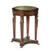 the inset circular green marble top above a frieze with classical mounts, raised on square tapered legs with Egyptian bust capitals, on a shaped quadriform base raised on foliate brass feet