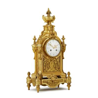FRENCH GILT METAL MANTEL CLOCK, CHARLES LUMINEAU, PARIS