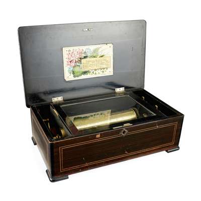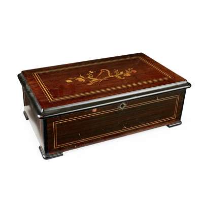 SWISS ROSEWOOD AND GRAIN-PAINTED MUSIC BOX Y