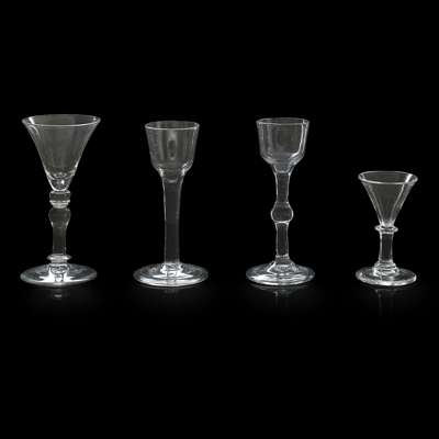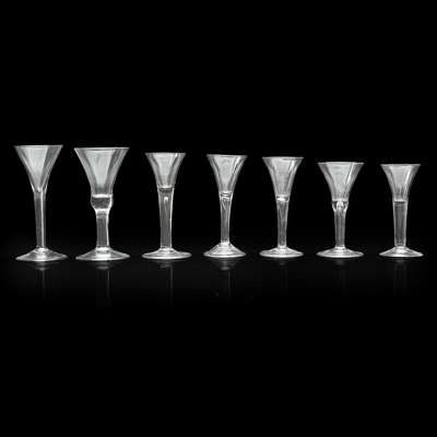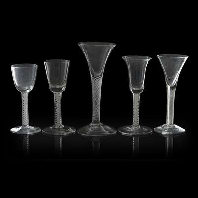 FIVE GEORGIAN TWIST-STEM WINE GLASSES