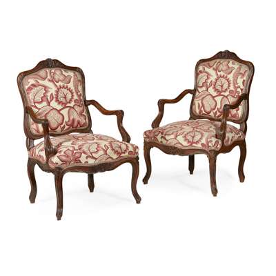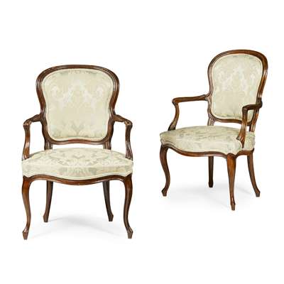 PAIR OF GOOD GEORGE III WALNUT OPEN ARMCHAIRS