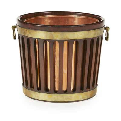 GEORGE III MAHOGANY BRASS BANDED PEAT BUCKET