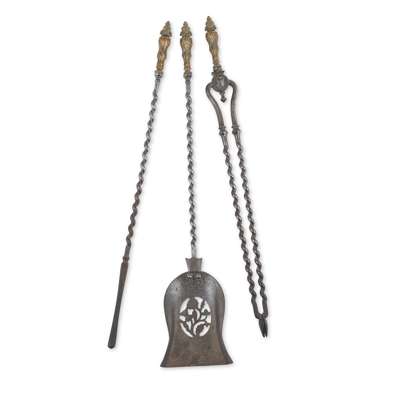 SET OF GEORGIAN STEEL AND BRASS FIRE IRONS