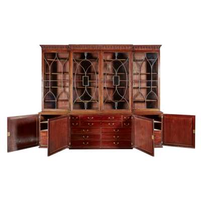 GEORGE III MAHOGANY BREAKFRONT LIBRARY BOOKCASE, AFTER A DESIGN BY THOMAS SHERATON