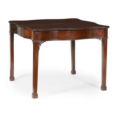 GEORGE III MAHOGANY CONCERTINA ACTION SERPENTINE TEA TABLE