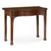 the serpentine fold-over top with a leaf carved edge, opening on a concertina action, raised on square chamfered legs ending in block feet with arched brackets