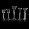 comprising three opaque-twist stem glasses, two double series with various bowl shapes, 16.5cm, 15cm and 14cm high; and two air-twist stem glasses, both with trumpet bowls, 19.5cm and 16.5cm high (5)