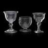 comprising a sweetmeat glass, with ogee bowl and a moulded pedestal ('Silesian') stem, 14cm high; a further sweetmeat glass, on a baluster stem and domed foot, 15.5cm high; and a glass with a rounded bucket-bowl, short stem and thick foot, 11.5cm high (3)