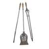 with acanthus cast brass handles above twisted steel shafts, comprising a pierced shovel, 79cm long; a pair of tongs, 75.5cm long; and a poker, 76.5cm long (3)