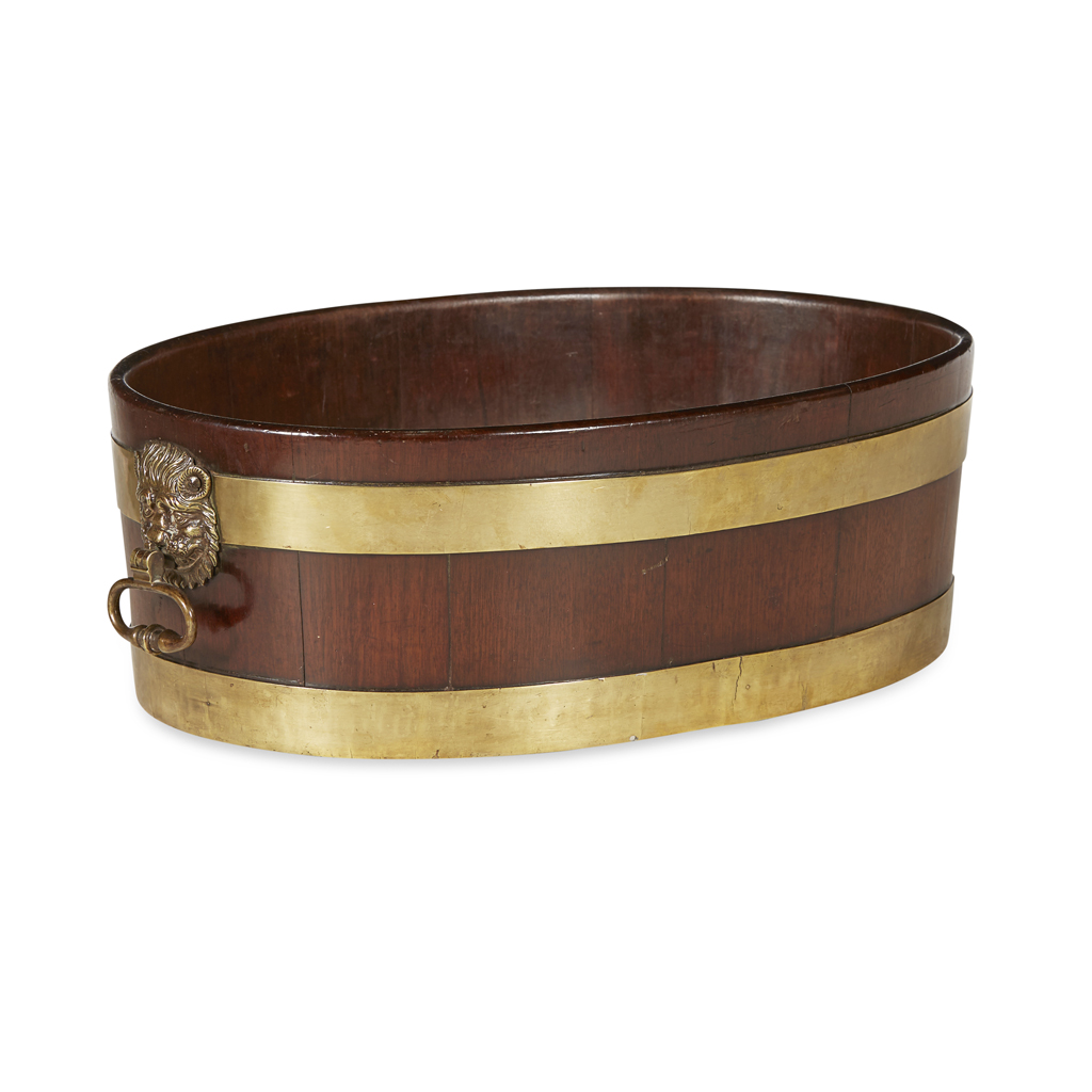 GEORGE III MAHOGANY AND BRASS BANDED WINE COOLER, AFTER A DESIGN BY THOMAS CHIPPENDALE