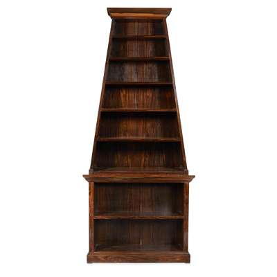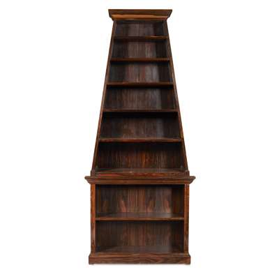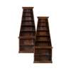 the moulded cornices above six open graduated fixed shelves; on projecting bases with moulded cornices above an open fixed shelf, on plinth bases (2)