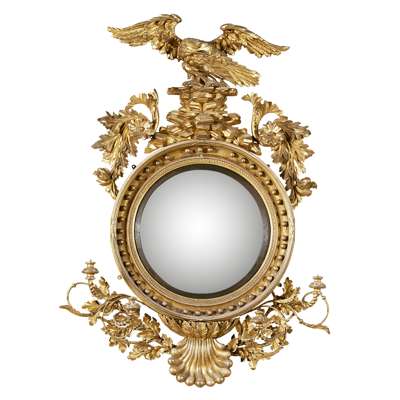 LARGE REGENCY GILTWOOD CONVEX GIRANDOLE MIRROR