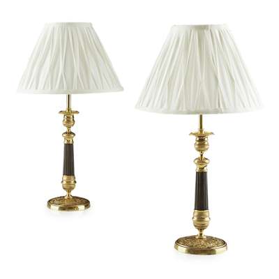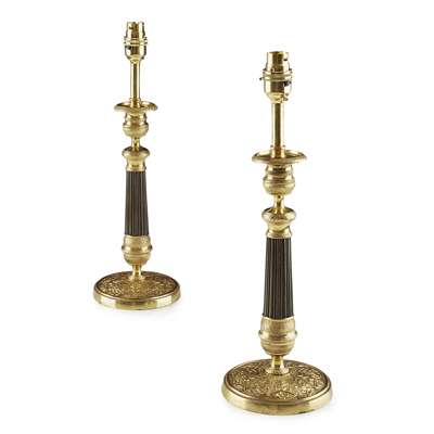 PAIR OF REGENCY PATINATED AND GILT BRONZE TABLE LAMPS
