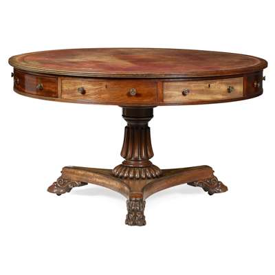 FINE REGENCY MAHOGANY DRUM TABLE, IN THE MANNER OF GILLOWS