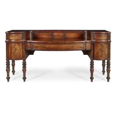 SCOTTISH REGENCY MAHOGANY AND EBONY STAGEBACK SIDEBOARD