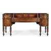 the superstructure with two sliding compartments and drawers to the ends, above a bowfront top over a long frieze drawer flanked by further deep drawers, raised on turned and tapered baluster legs headed by reeded panels