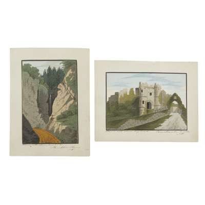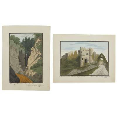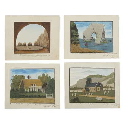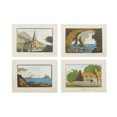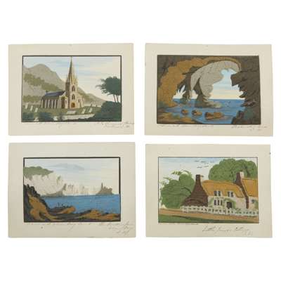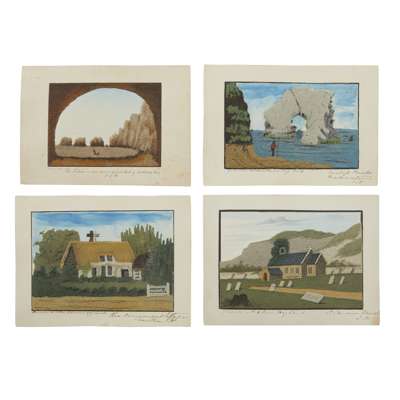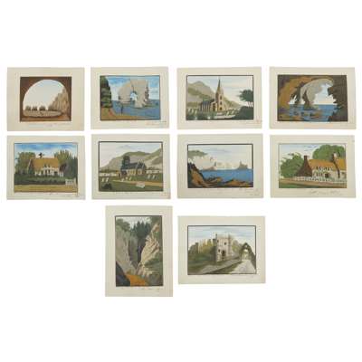 each with penned description 'Drawn with Alum Bay sand' and with Isle of Wight locations, including scenes of the Needles, cottages, churches, Carisbrooke Castle and Shanklin Chine; one dated 1851 (10)