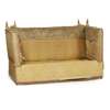 of typical form, covered in distressed foliate cream silk with needlework panel overlay and tassel trim