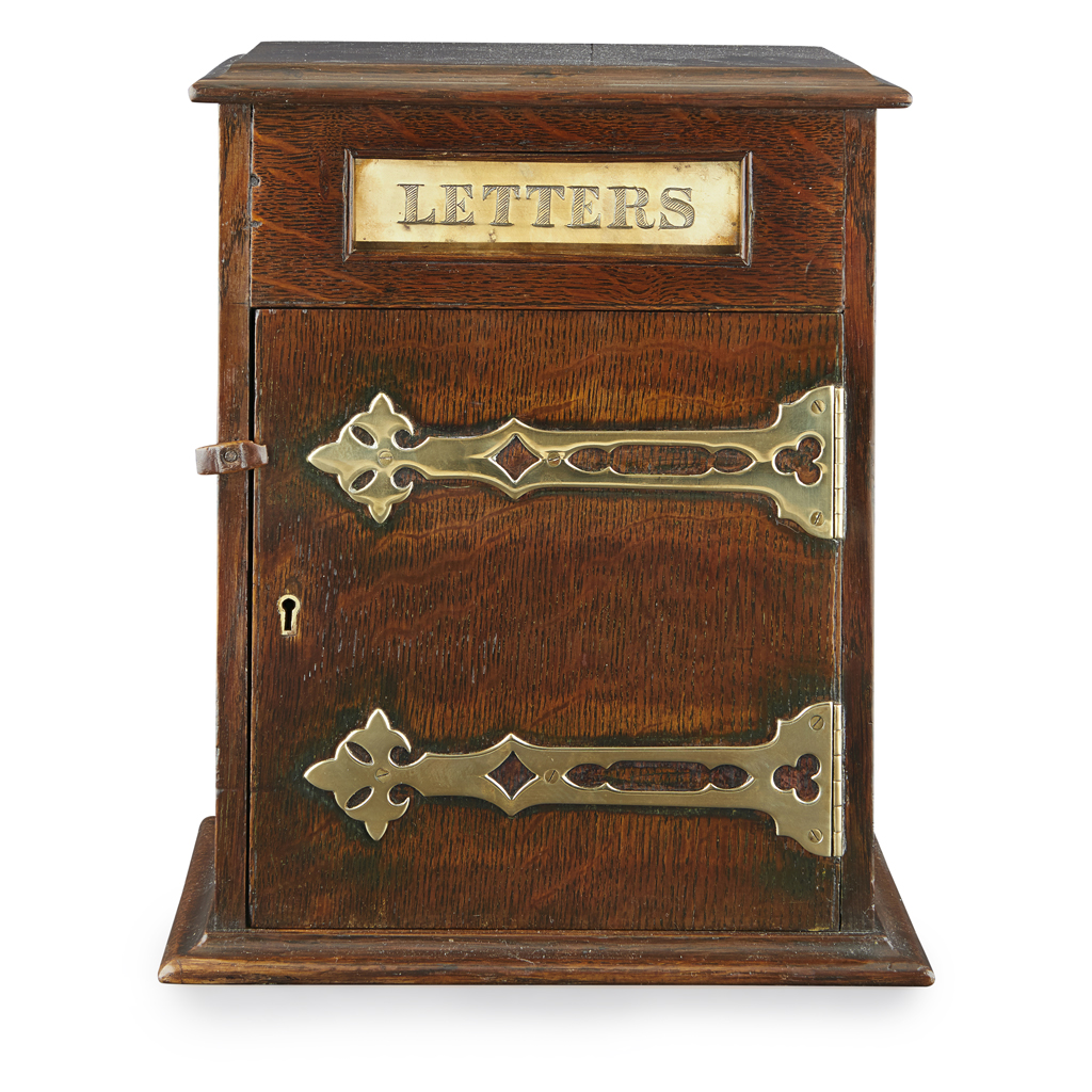 of rectangular form with a moulded top, above a letterplate marked LETTERS and a hinged door