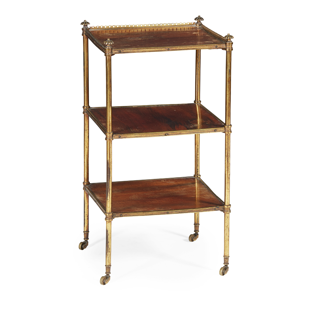REGENCY BRASS AND MAHOGANY ETAGERE